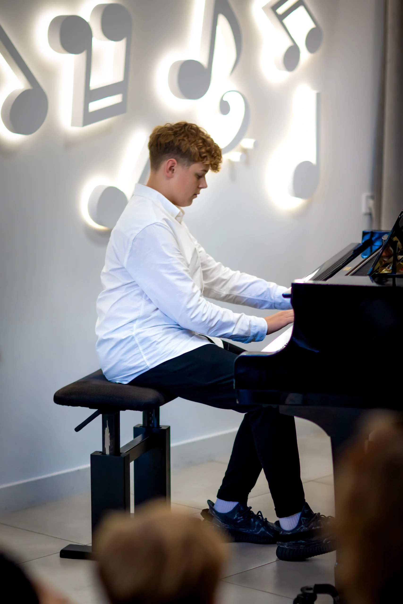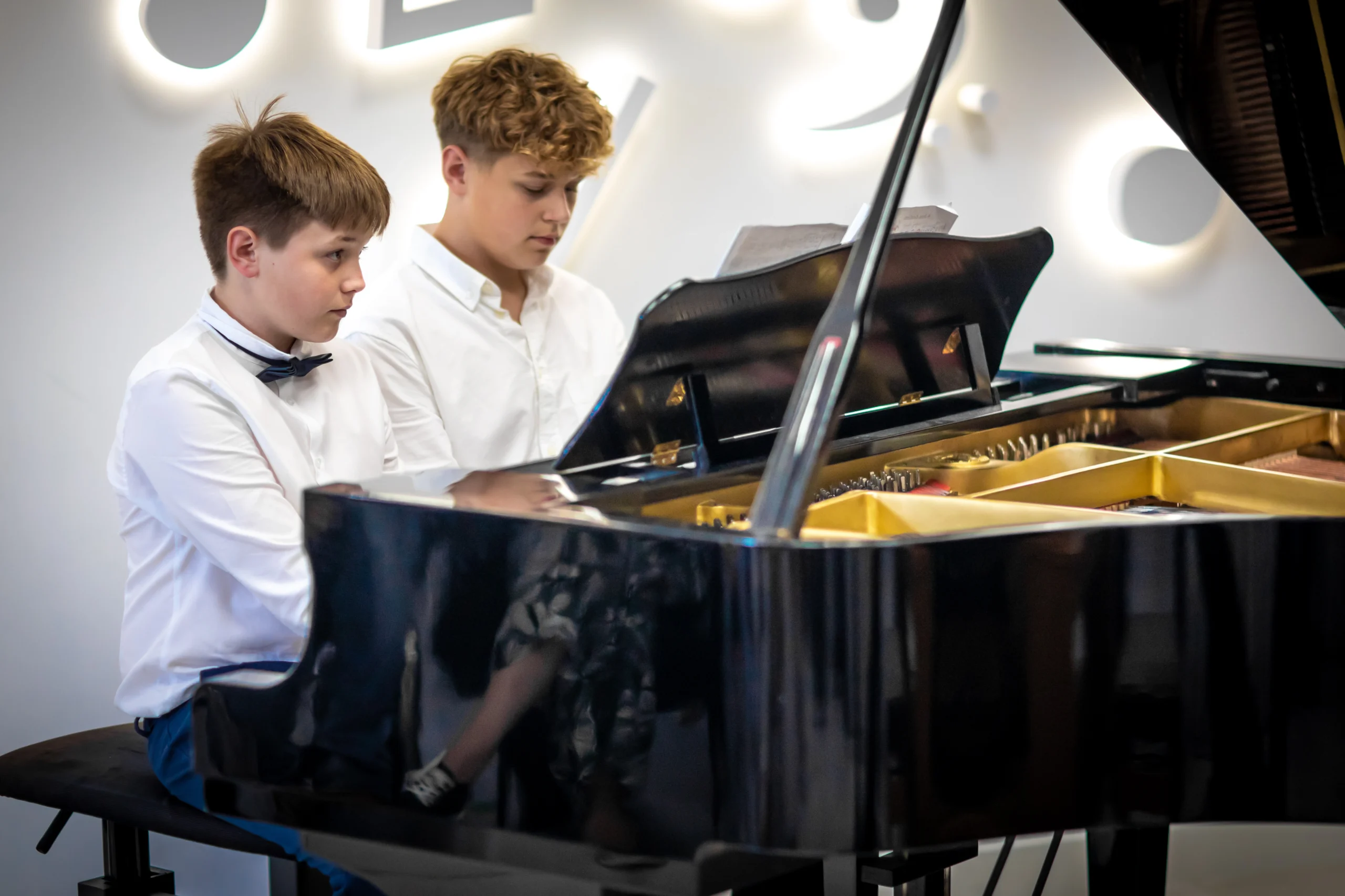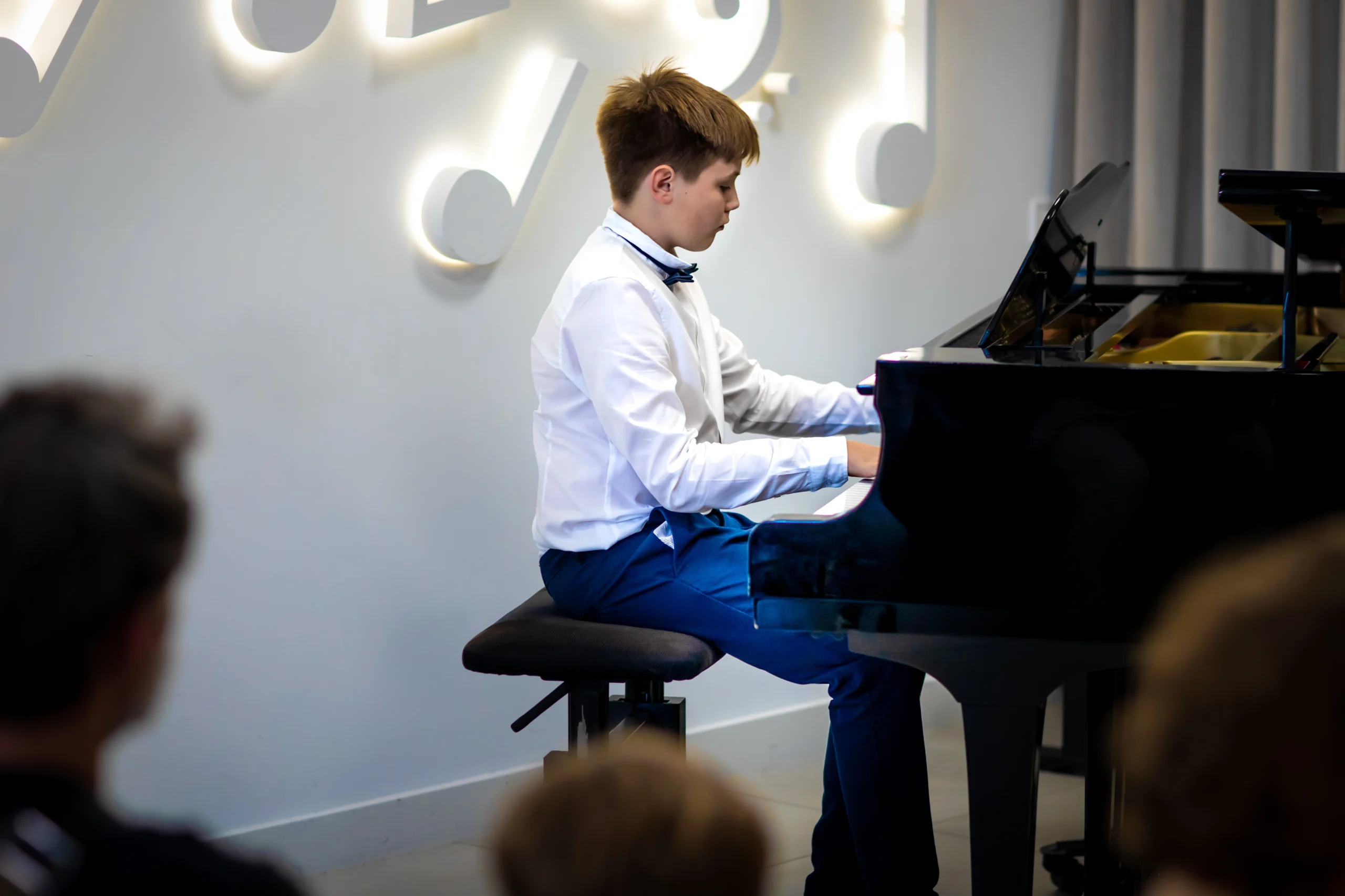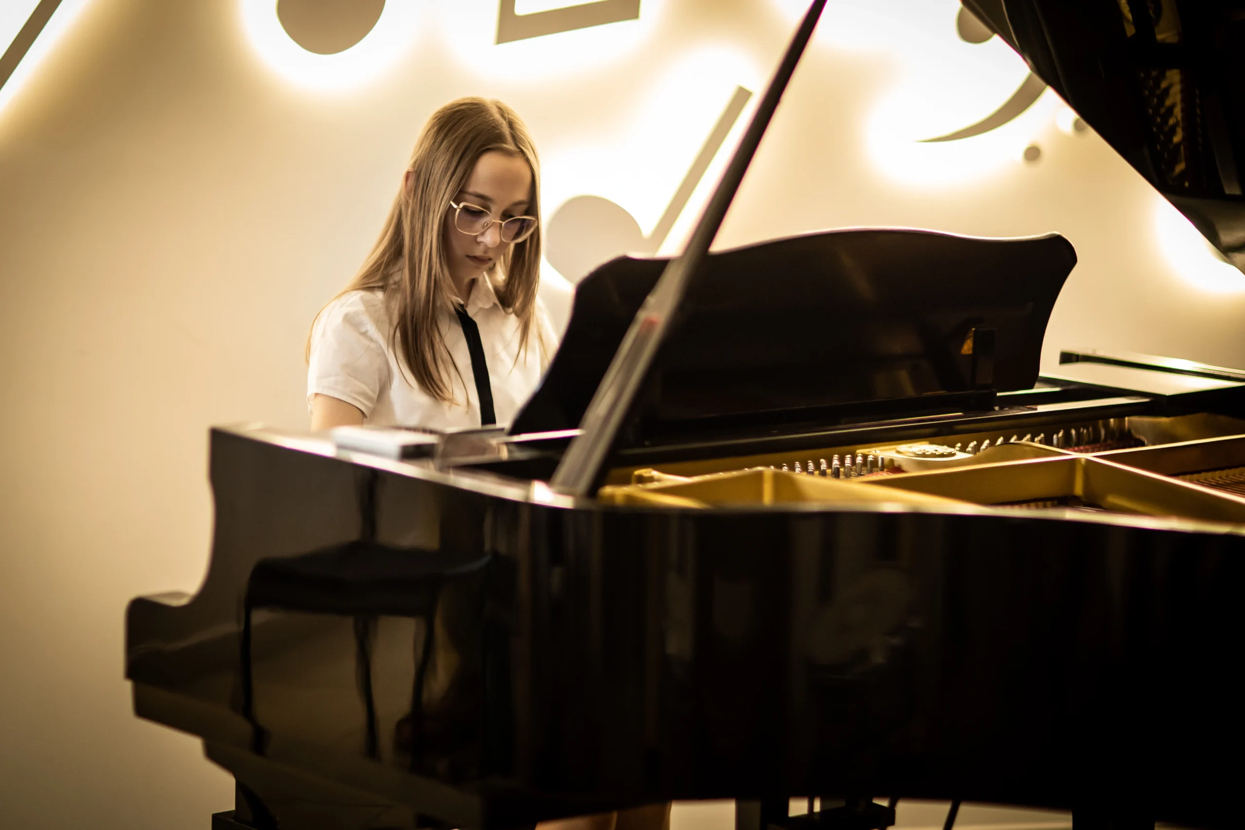 Ważnym elementem nauki gry na fortepianie w naszej szkole są występy i koncerty, które dają uczniom możliwość zaprezentowania swoich umiejętności przed szerszą publicznością. Tego typu doświadczenia nie tylko mobilizują do pracy, ale również uczą radzenia sobie ze stresem i wyzwaniami. Dzięki regularnym występom, uczniowie rozwijają umiejętność współpracy w grupie oraz zdobywają cenne doświadczenie sceniczne. Wierzymy, że muzyka to nie tylko technika, ale przede wszystkim emocje, które uczniowie przekładają na dźwięki, tworząc niezapomniane chwile dla siebie i swoich słuchaczy.