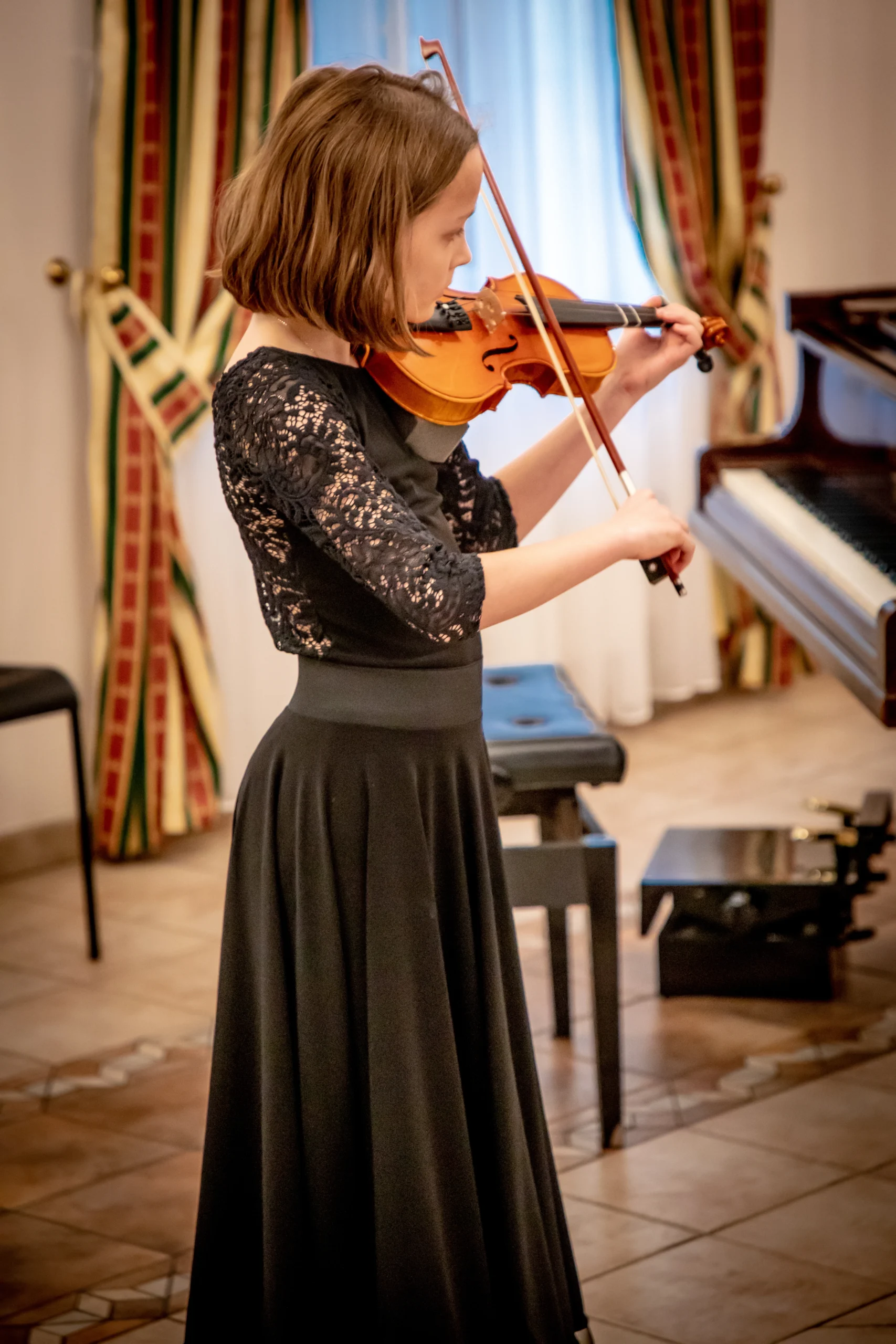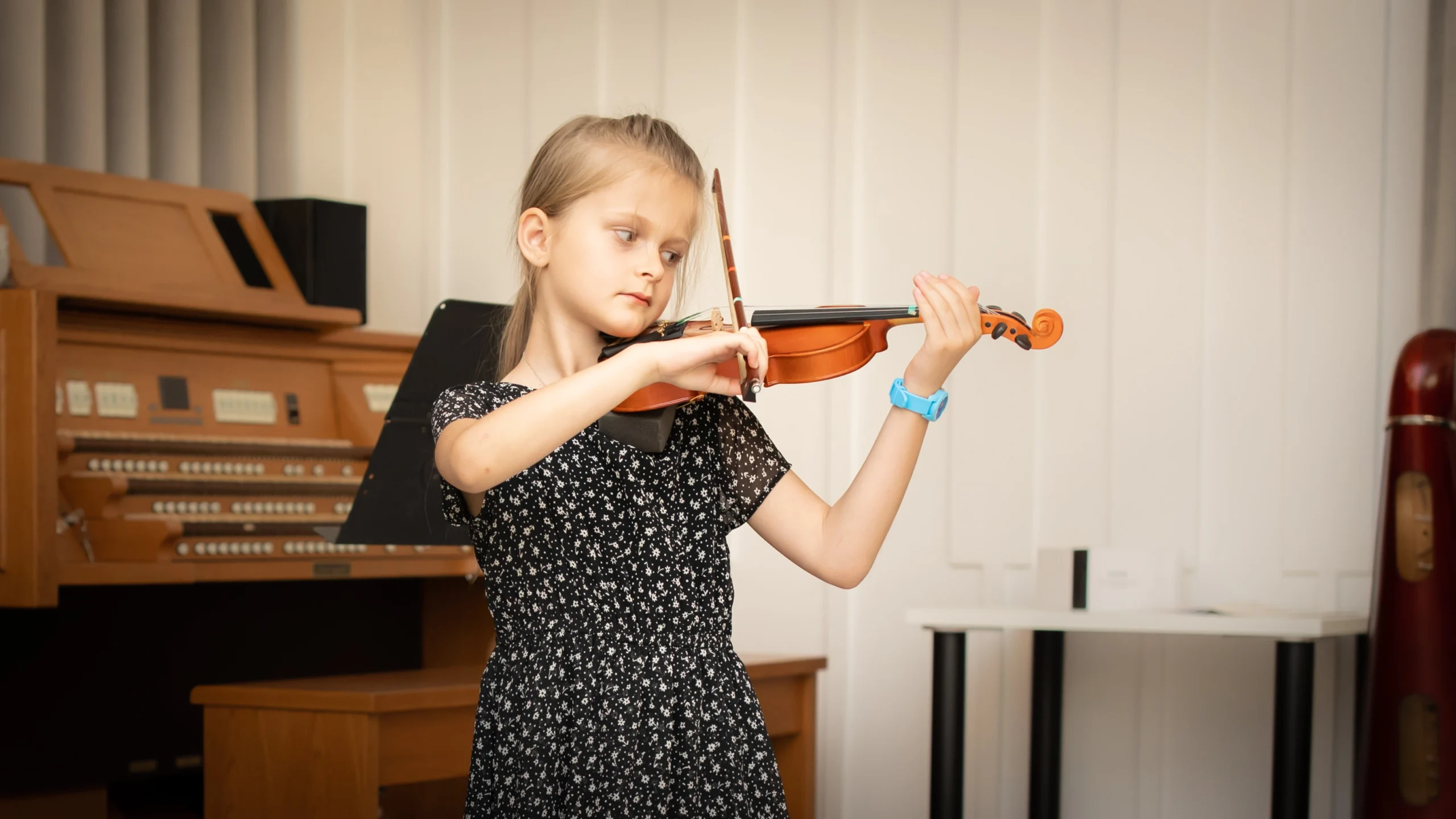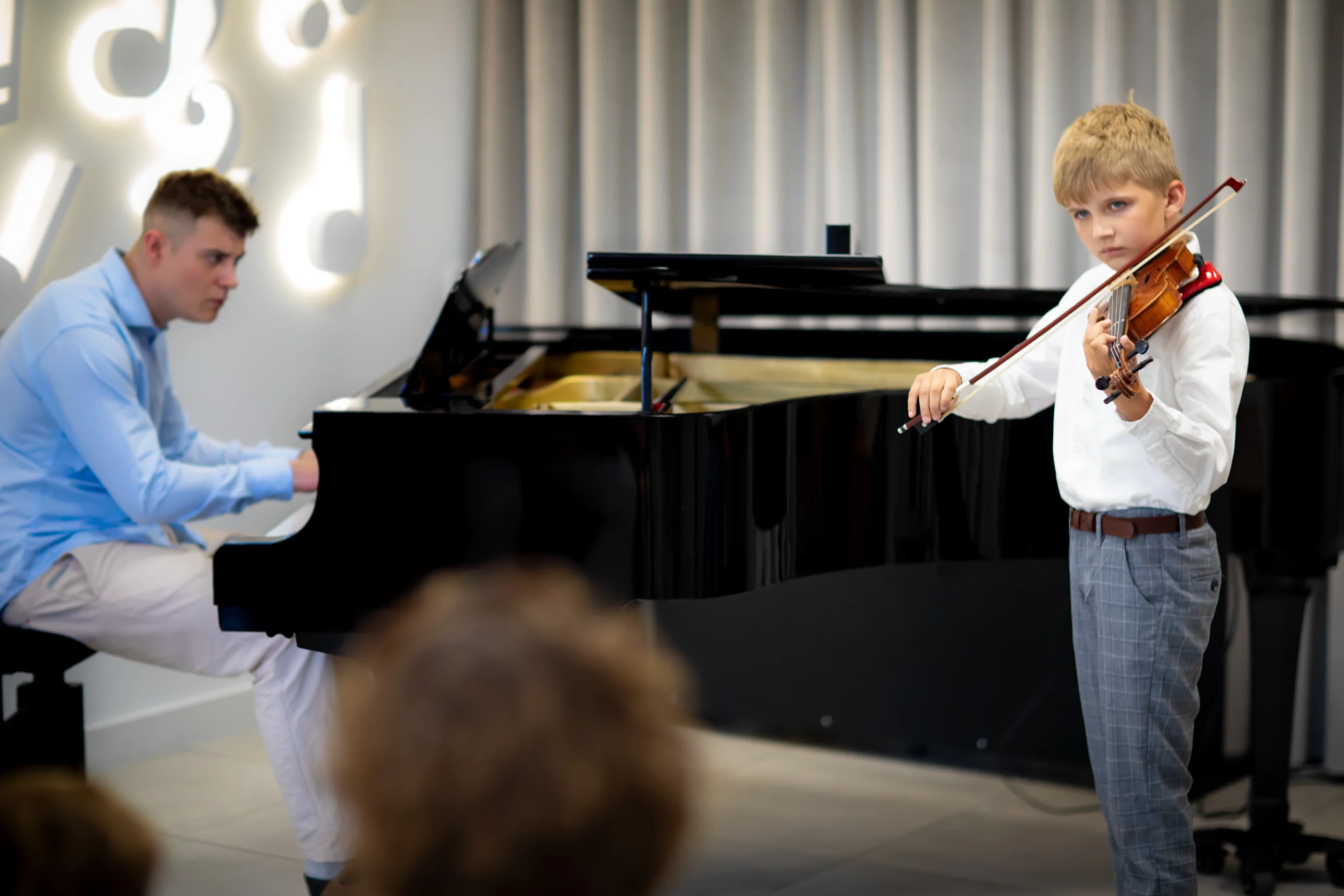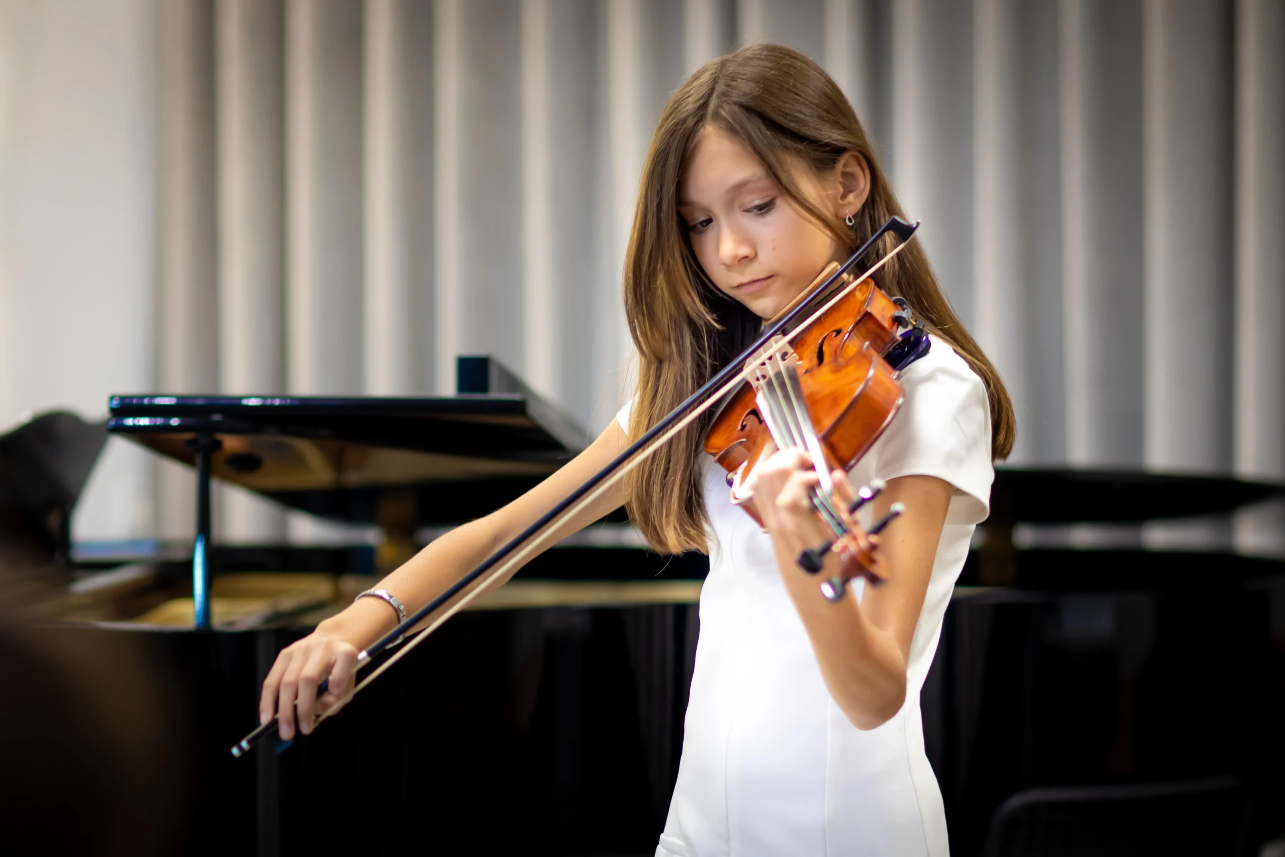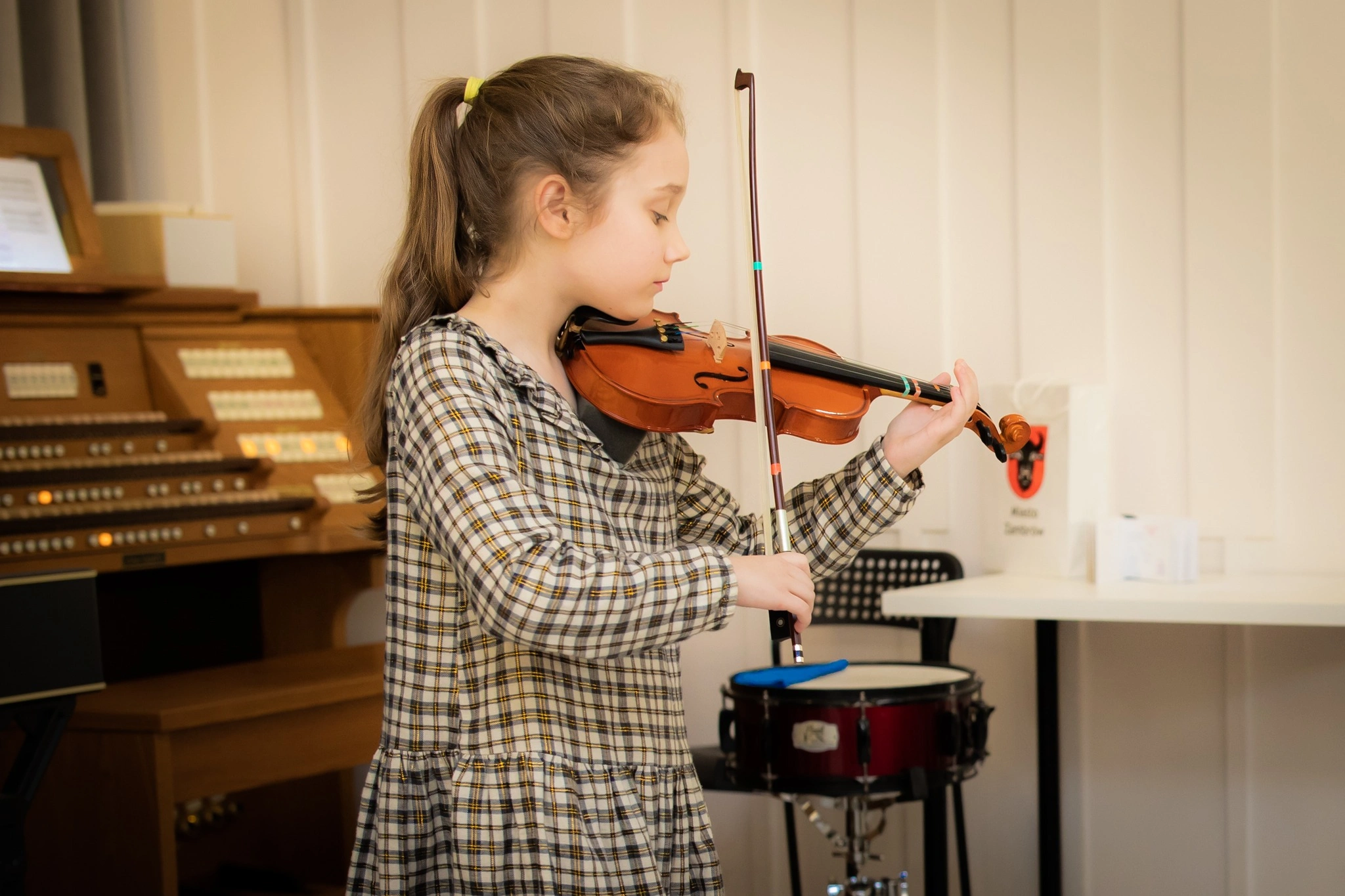 Nauka gry na skrzypcach w szkole muzycznej to proces, który łączy technikę, emocje i kreatywność. Uczniowie zaczynają od podstawowych umiejętności, takich jak prawidłowe trzymanie instrumentu oraz wydobywanie dźwięku za pomocą smyczka. Nasi nauczyciele koncentrują się na indywidualnym podejściu, dostosowując metody nauczania do poziomu i potrzeb każdego ucznia. Dzięki temu każdy może rozwijać swoje umiejętności w komfortowym tempie, odkrywając jednocześnie radość z grania.