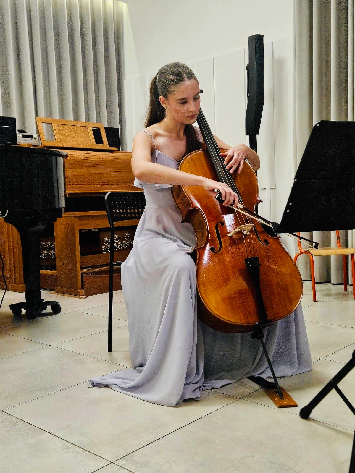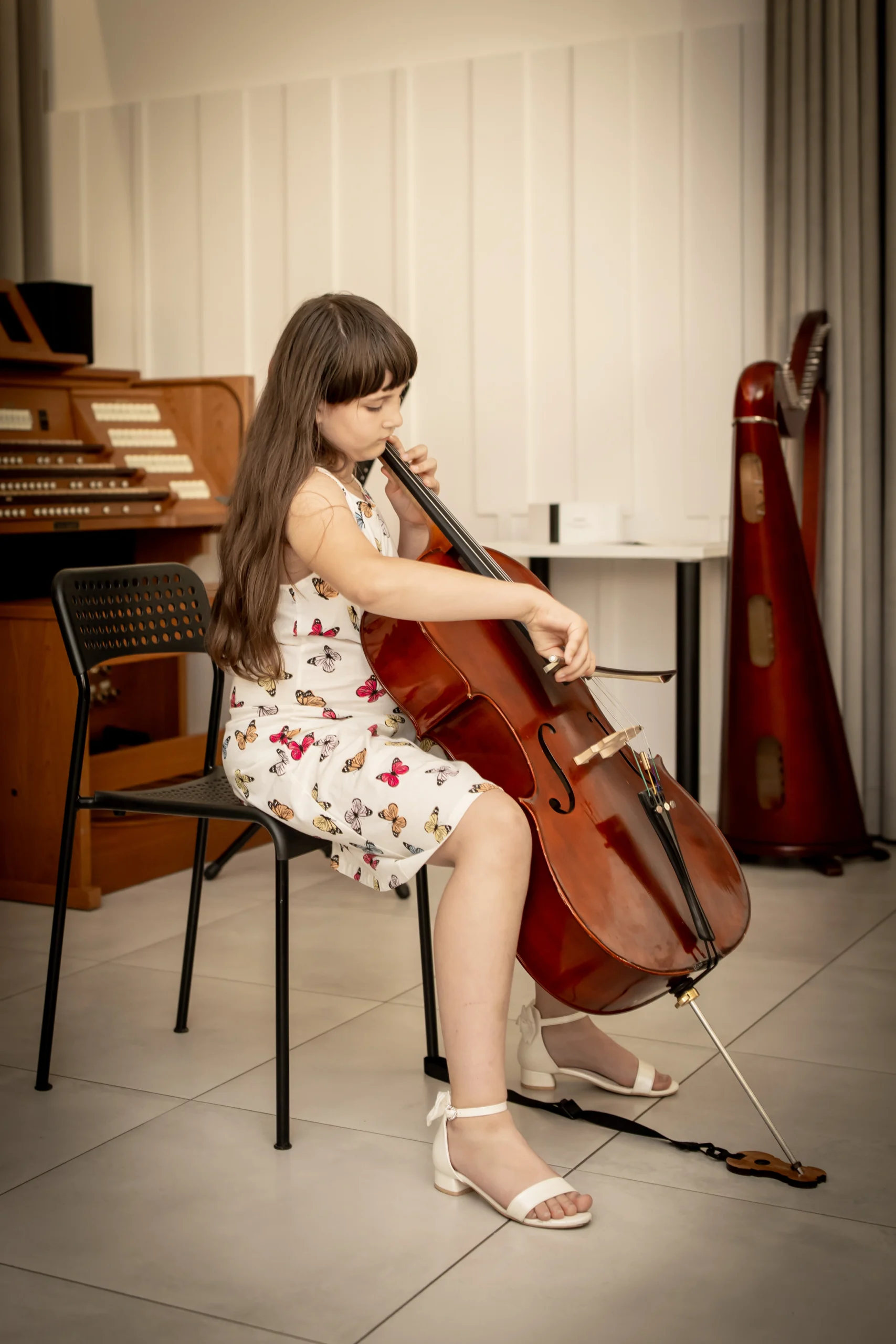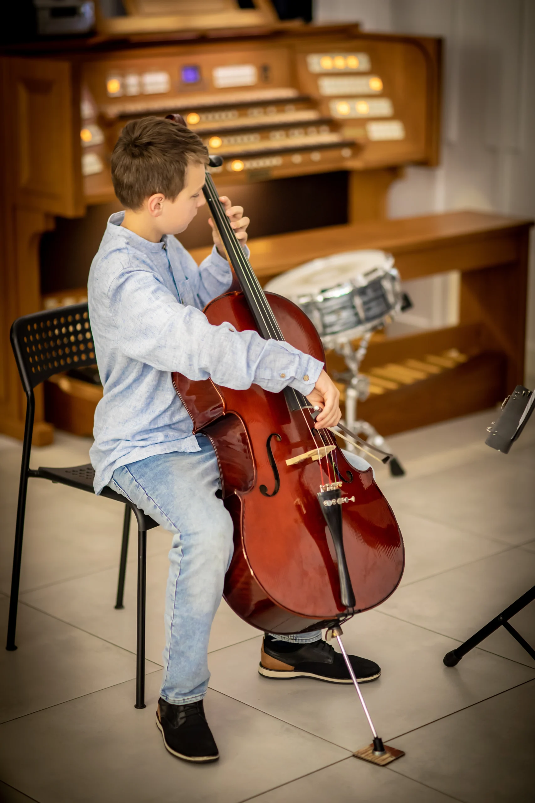 Gra na wiolonczeli to jedna z najpiękniejszych form artystycznego wyrazu, która łączy w sobie technikę, emocje i pasję. W naszej szkole muzycznej uczniowie mają okazję zgłębiać tajniki tego wspaniałego instrumentu, ucząc się zarówno klasycznych utworów, jak i współczesnych kompozycji. Wiolonczela, dzięki swojemu ciepłemu brzmieniu i bogatej palecie dynamiki, pozwala na wyrażanie szerokiego wachlarza emocji, od delikatnej nostalgii po radosną ekspresję. Zajęcia prowadzone są przez doświadczonych nauczycieli, którzy wspierają młodych muzyków w rozwijaniu ich umiejętności oraz artystycznej wrażliwości.