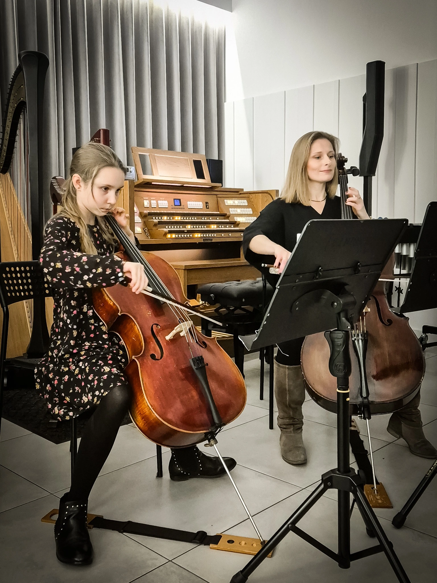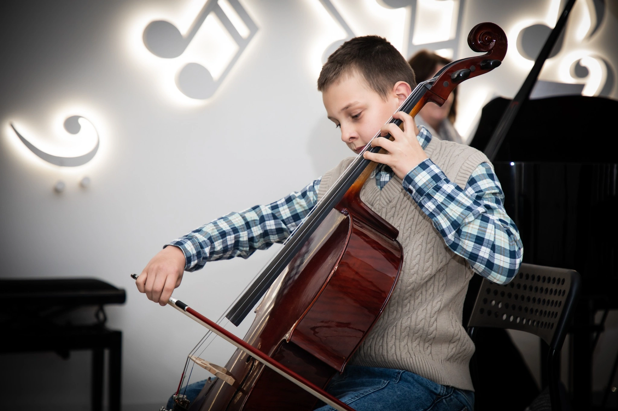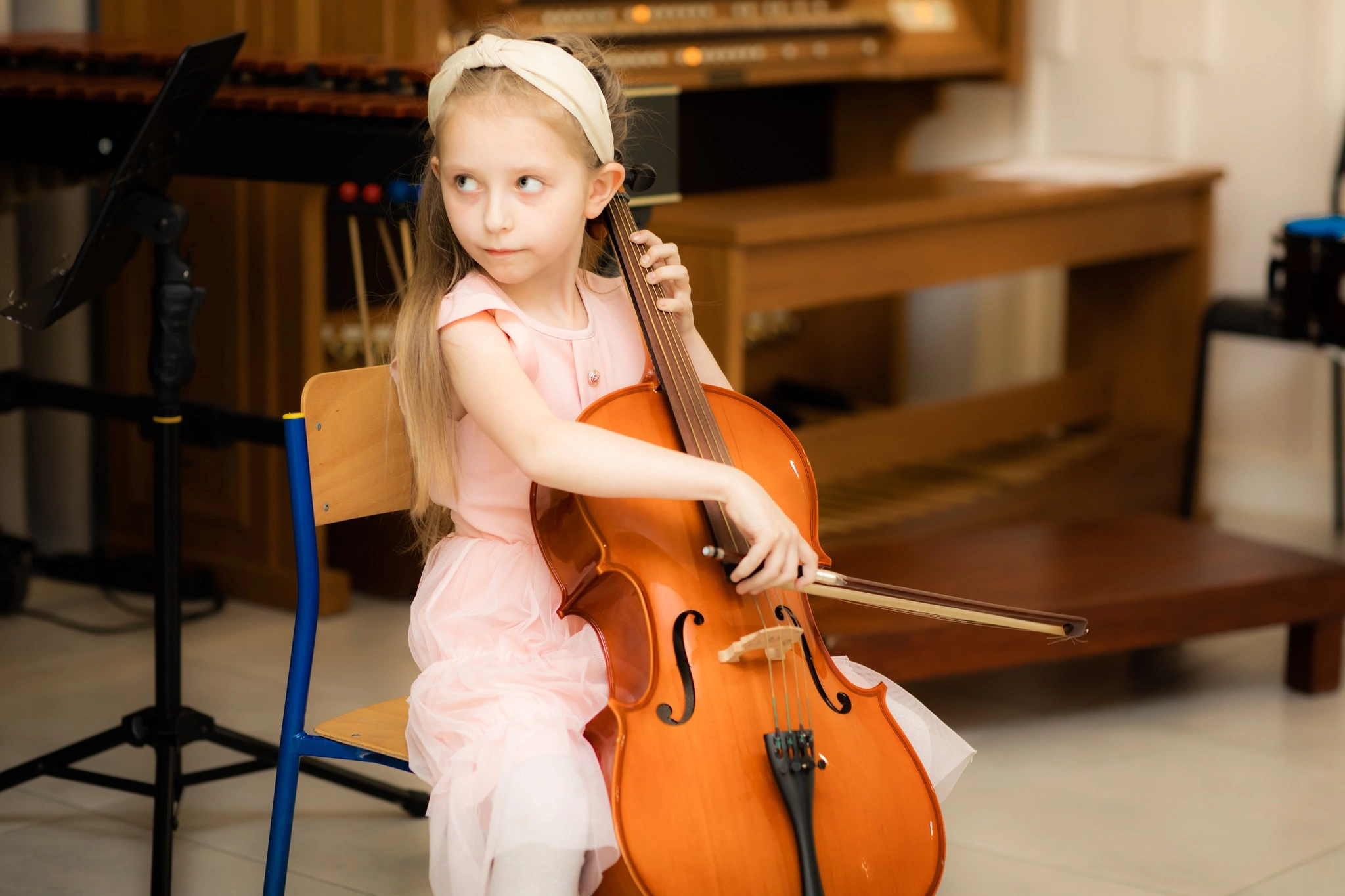 Gra na wiolonczeli to jedna z najpiękniejszych form artystycznego wyrazu, która łączy w sobie technikę, emocje i pasję. W naszej szkole muzycznej uczniowie mają okazję zgłębiać tajniki tego wspaniałego instrumentu, ucząc się zarówno klasycznych utworów, jak i współczesnych kompozycji. Wiolonczela, dzięki swojemu ciepłemu brzmieniu i bogatej palecie dynamiki, pozwala na wyrażanie szerokiego wachlarza emocji, od delikatnej nostalgii po radosną ekspresję. Zajęcia prowadzone są przez doświadczonych nauczycieli, którzy wspierają młodych muzyków w rozwijaniu ich umiejętności oraz artystycznej wrażliwości.